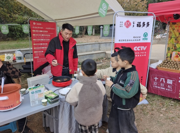 活动现场人头攒动,福多多猪肉、东安鸡、安化黑茶、米米糙米、土鸡蛋、黑山羊、芦笋面等数十种绿色有机地标农产品整齐陈列,从生鲜肉类到粮油干货,从传统茶饮到生态禽蛋,全方位覆盖居民日常饮食需求。参展现场支起灶台,演示绿色优质食材的烹饪技艺:金黄的东安鸡下锅煲汤,香气扑鼻;新鲜的猪肉烤制,金黄焦脆色泽诱人;现场冲泡的安化有机黑茶,茶汤醇厚回甘。“这些食材不用过多调味就很鲜美,吃着放心!”刚品尝完菜肴的居民点赞道,不少人当场下单,将健康美味“拎回家”。